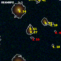 Black segments are analyzed here. Roll mouse over color images to view segments. Best viewed in a wide browser window (1200 pixels or more). Download SED & P(z) plots to view larger versions.