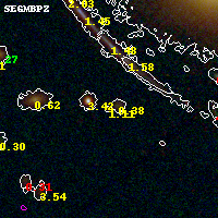 Black segments are analyzed here. Roll mouse over color images to view segments. Best viewed in a wide browser window (1200 pixels or more). Download SED & P(z) plots to view larger versions.