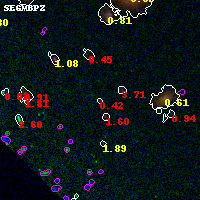 Black segments are analyzed here. Roll mouse over color images to view segments. Best viewed in a wide browser window (1200 pixels or more). Download SED & P(z) plots to view larger versions.