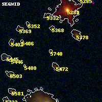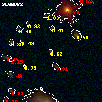 Black segments are analyzed here. Roll mouse over color images to view segments. Best viewed in a wide browser window (1200 pixels or more). Download SED & P(z) plots to view larger versions.