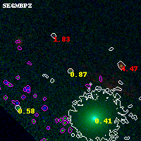 Black segments are analyzed here. Roll mouse over color images to view segments. Best viewed in a wide browser window (1200 pixels or more). Download SED & P(z) plots to view larger versions.