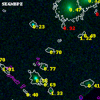 Black segments are analyzed here. Roll mouse over color images to view segments. Best viewed in a wide browser window (1200 pixels or more). Download SED & P(z) plots to view larger versions.