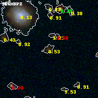 Black segments are analyzed here. Roll mouse over color images to view segments. Best viewed in a wide browser window (1200 pixels or more). Download SED & P(z) plots to view larger versions.