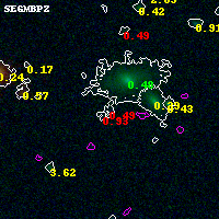 Black segments are analyzed here. Roll mouse over color images to view segments. Best viewed in a wide browser window (1200 pixels or more). Download SED & P(z) plots to view larger versions.