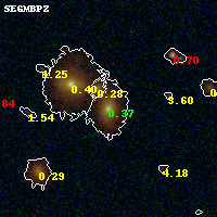 Black segments are analyzed here. Roll mouse over color images to view segments. Best viewed in a wide browser window (1200 pixels or more). Download SED & P(z) plots to view larger versions.