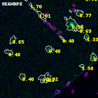 Black segments are analyzed here. Roll mouse over color images to view segments. Best viewed in a wide browser window (1200 pixels or more). Download SED & P(z) plots to view larger versions.