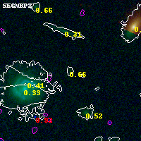 Black segments are analyzed here. Roll mouse over color images to view segments. Best viewed in a wide browser window (1200 pixels or more). Download SED & P(z) plots to view larger versions.