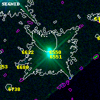 Black segments are analyzed here. Roll mouse over color images to view segments. Best viewed in a wide browser window (1200 pixels or more). Download SED & P(z) plots to view larger versions.