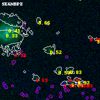Black segments are analyzed here. Roll mouse over color images to view segments. Best viewed in a wide browser window (1200 pixels or more). Download SED & P(z) plots to view larger versions.