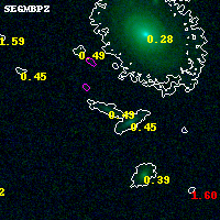 Black segments are analyzed here. Roll mouse over color images to view segments. Best viewed in a wide browser window (1200 pixels or more). Download SED & P(z) plots to view larger versions.
