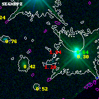 Black segments are analyzed here. Roll mouse over color images to view segments. Best viewed in a wide browser window (1200 pixels or more). Download SED & P(z) plots to view larger versions.