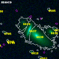 Black segments are analyzed here. Roll mouse over color images to view segments. Best viewed in a wide browser window (1200 pixels or more). Download SED & P(z) plots to view larger versions.