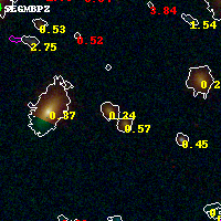Black segments are analyzed here. Roll mouse over color images to view segments. Best viewed in a wide browser window (1200 pixels or more). Download SED & P(z) plots to view larger versions.
