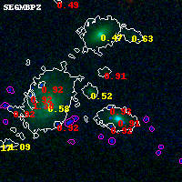 Black segments are analyzed here. Roll mouse over color images to view segments. Best viewed in a wide browser window (1200 pixels or more). Download SED & P(z) plots to view larger versions.