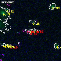 Black segments are analyzed here. Roll mouse over color images to view segments. Best viewed in a wide browser window (1200 pixels or more). Download SED & P(z) plots to view larger versions.