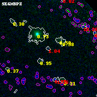 Black segments are analyzed here. Roll mouse over color images to view segments. Best viewed in a wide browser window (1200 pixels or more). Download SED & P(z) plots to view larger versions.