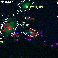 Black segments are analyzed here. Roll mouse over color images to view segments. Best viewed in a wide browser window (1200 pixels or more). Download SED & P(z) plots to view larger versions.