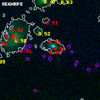 Black segments are analyzed here. Roll mouse over color images to view segments. Best viewed in a wide browser window (1200 pixels or more). Download SED & P(z) plots to view larger versions.