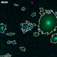 Black segments are analyzed here. Roll mouse over color images to view segments. Best viewed in a wide browser window (1200 pixels or more). Download SED & P(z) plots to view larger versions.