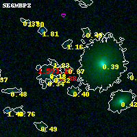 Black segments are analyzed here. Roll mouse over color images to view segments. Best viewed in a wide browser window (1200 pixels or more). Download SED & P(z) plots to view larger versions.