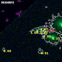 Black segments are analyzed here. Roll mouse over color images to view segments. Best viewed in a wide browser window (1200 pixels or more). Download SED & P(z) plots to view larger versions.