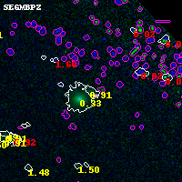 Black segments are analyzed here. Roll mouse over color images to view segments. Best viewed in a wide browser window (1200 pixels or more). Download SED & P(z) plots to view larger versions.
