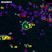 Black segments are analyzed here. Roll mouse over color images to view segments. Best viewed in a wide browser window (1200 pixels or more). Download SED & P(z) plots to view larger versions.
