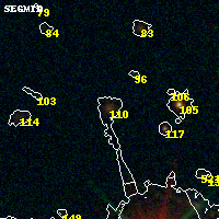 Black segments are analyzed here. Roll mouse over color images to view segments. Best viewed in a wide browser window (1200 pixels or more). Download SED & P(z) plots to view larger versions.