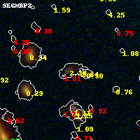 Black segments are analyzed here. Roll mouse over color images to view segments. Best viewed in a wide browser window (1200 pixels or more). Download SED & P(z) plots to view larger versions.