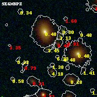 Black segments are analyzed here. Roll mouse over color images to view segments. Best viewed in a wide browser window (1200 pixels or more). Download SED & P(z) plots to view larger versions.