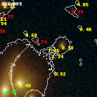 Black segments are analyzed here. Roll mouse over color images to view segments. Best viewed in a wide browser window (1200 pixels or more). Download SED & P(z) plots to view larger versions.