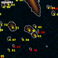 Black segments are analyzed here. Roll mouse over color images to view segments. Best viewed in a wide browser window (1200 pixels or more). Download SED & P(z) plots to view larger versions.