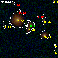 Black segments are analyzed here. Roll mouse over color images to view segments. Best viewed in a wide browser window (1200 pixels or more). Download SED & P(z) plots to view larger versions.