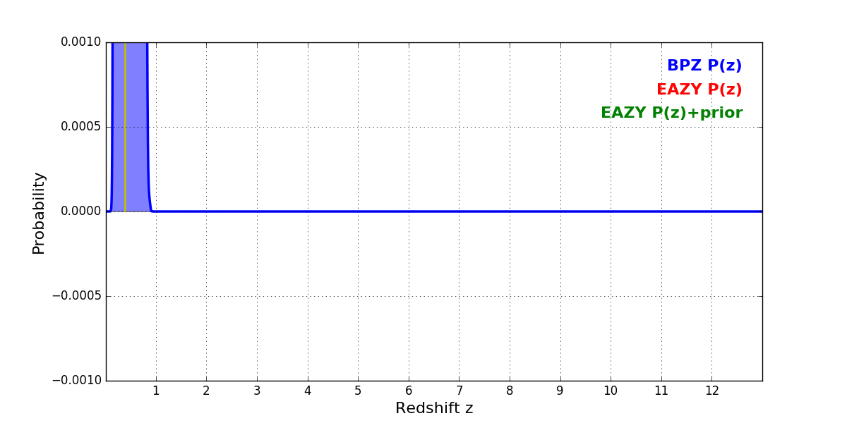 In P(z) plots: Yellow lines mark the cluster redshift z = 0.390,