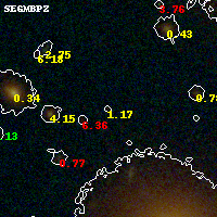 Black segments are analyzed here. Roll mouse over color images to view segments. Best viewed in a wide browser window (1200 pixels or more). Download SED & P(z) plots to view larger versions.
