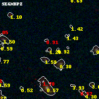 Black segments are analyzed here. Roll mouse over color images to view segments. Best viewed in a wide browser window (1200 pixels or more). Download SED & P(z) plots to view larger versions.