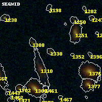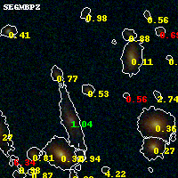 Black segments are analyzed here. Roll mouse over color images to view segments. Best viewed in a wide browser window (1200 pixels or more). Download SED & P(z) plots to view larger versions.