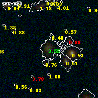 Black segments are analyzed here. Roll mouse over color images to view segments. Best viewed in a wide browser window (1200 pixels or more). Download SED & P(z) plots to view larger versions.