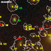 Black segments are analyzed here. Roll mouse over color images to view segments. Best viewed in a wide browser window (1200 pixels or more). Download SED & P(z) plots to view larger versions.