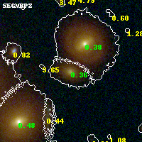 Black segments are analyzed here. Roll mouse over color images to view segments. Best viewed in a wide browser window (1200 pixels or more). Download SED & P(z) plots to view larger versions.