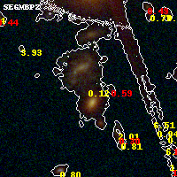 Black segments are analyzed here. Roll mouse over color images to view segments. Best viewed in a wide browser window (1200 pixels or more). Download SED & P(z) plots to view larger versions.