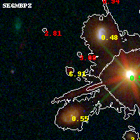 Black segments are analyzed here. Roll mouse over color images to view segments. Best viewed in a wide browser window (1200 pixels or more). Download SED & P(z) plots to view larger versions.