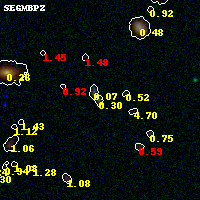 Black segments are analyzed here. Roll mouse over color images to view segments. Best viewed in a wide browser window (1200 pixels or more). Download SED & P(z) plots to view larger versions.