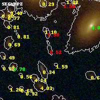 Black segments are analyzed here. Roll mouse over color images to view segments. Best viewed in a wide browser window (1200 pixels or more). Download SED & P(z) plots to view larger versions.