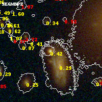 Black segments are analyzed here. Roll mouse over color images to view segments. Best viewed in a wide browser window (1200 pixels or more). Download SED & P(z) plots to view larger versions.