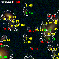 Black segments are analyzed here. Roll mouse over color images to view segments. Best viewed in a wide browser window (1200 pixels or more). Download SED & P(z) plots to view larger versions.