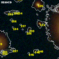 Black segments are analyzed here. Roll mouse over color images to view segments. Best viewed in a wide browser window (1200 pixels or more). Download SED & P(z) plots to view larger versions.