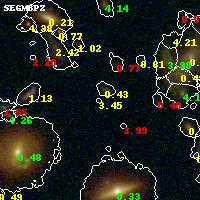 Black segments are analyzed here. Roll mouse over color images to view segments. Best viewed in a wide browser window (1200 pixels or more). Download SED & P(z) plots to view larger versions.