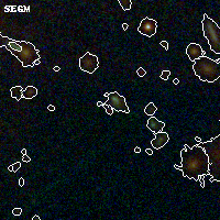 Black segments are analyzed here. Roll mouse over color images to view segments. Best viewed in a wide browser window (1200 pixels or more). Download SED & P(z) plots to view larger versions.