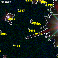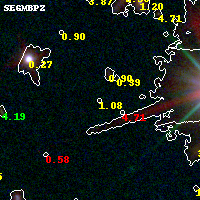 Black segments are analyzed here. Roll mouse over color images to view segments. Best viewed in a wide browser window (1200 pixels or more). Download SED & P(z) plots to view larger versions.